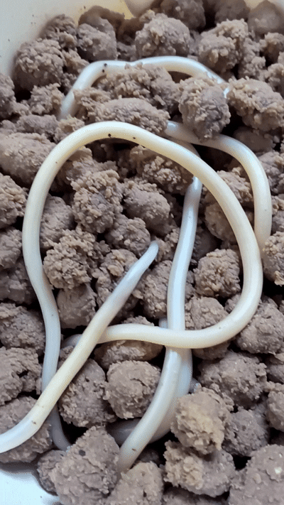 You shout when realizing that’s a worm, not a noodle on the coop floor.
