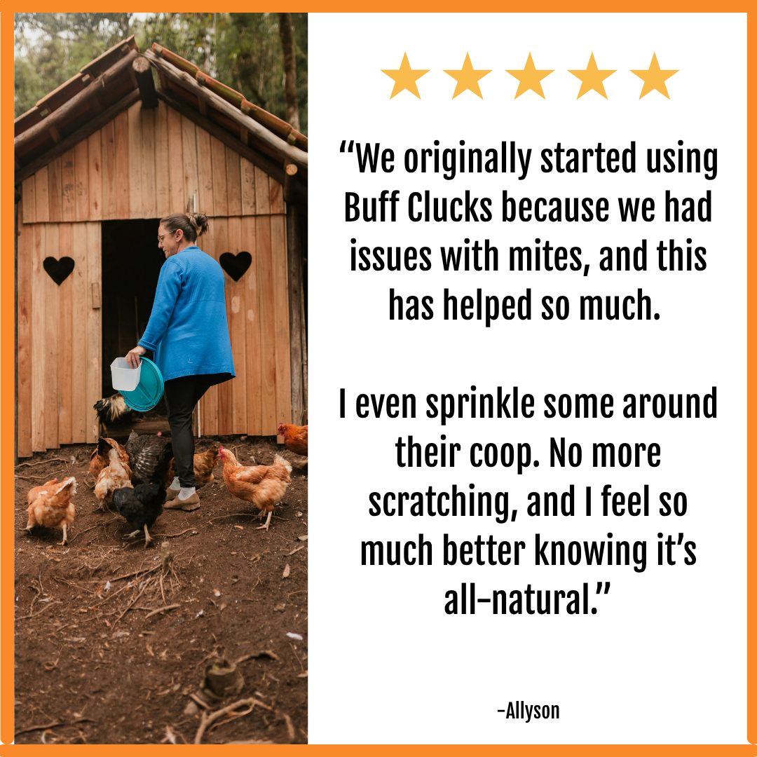 My chickens love their Buff Cluck. I can't say it's the reason but they have never had lice, mites or other pesky parasites, and it smells wonderful 💕 🐔